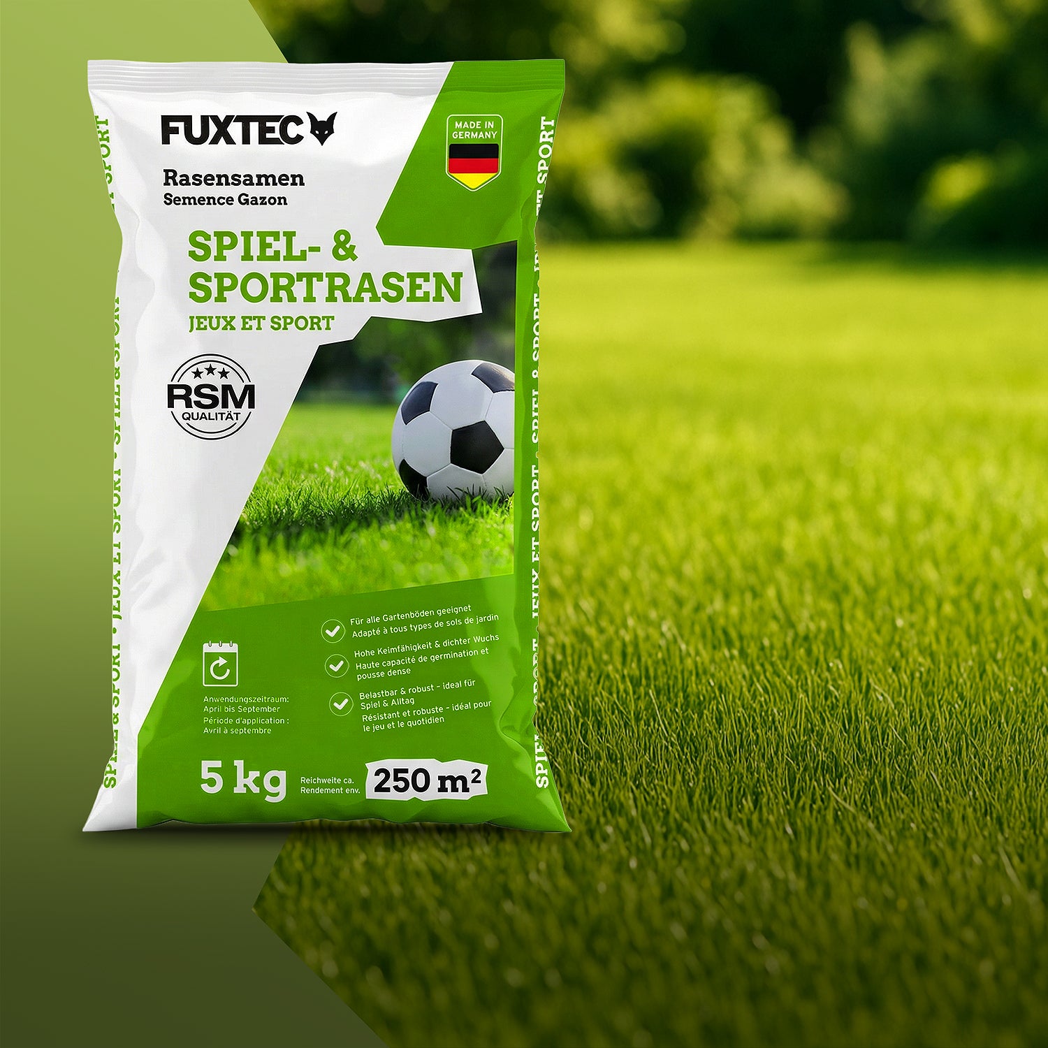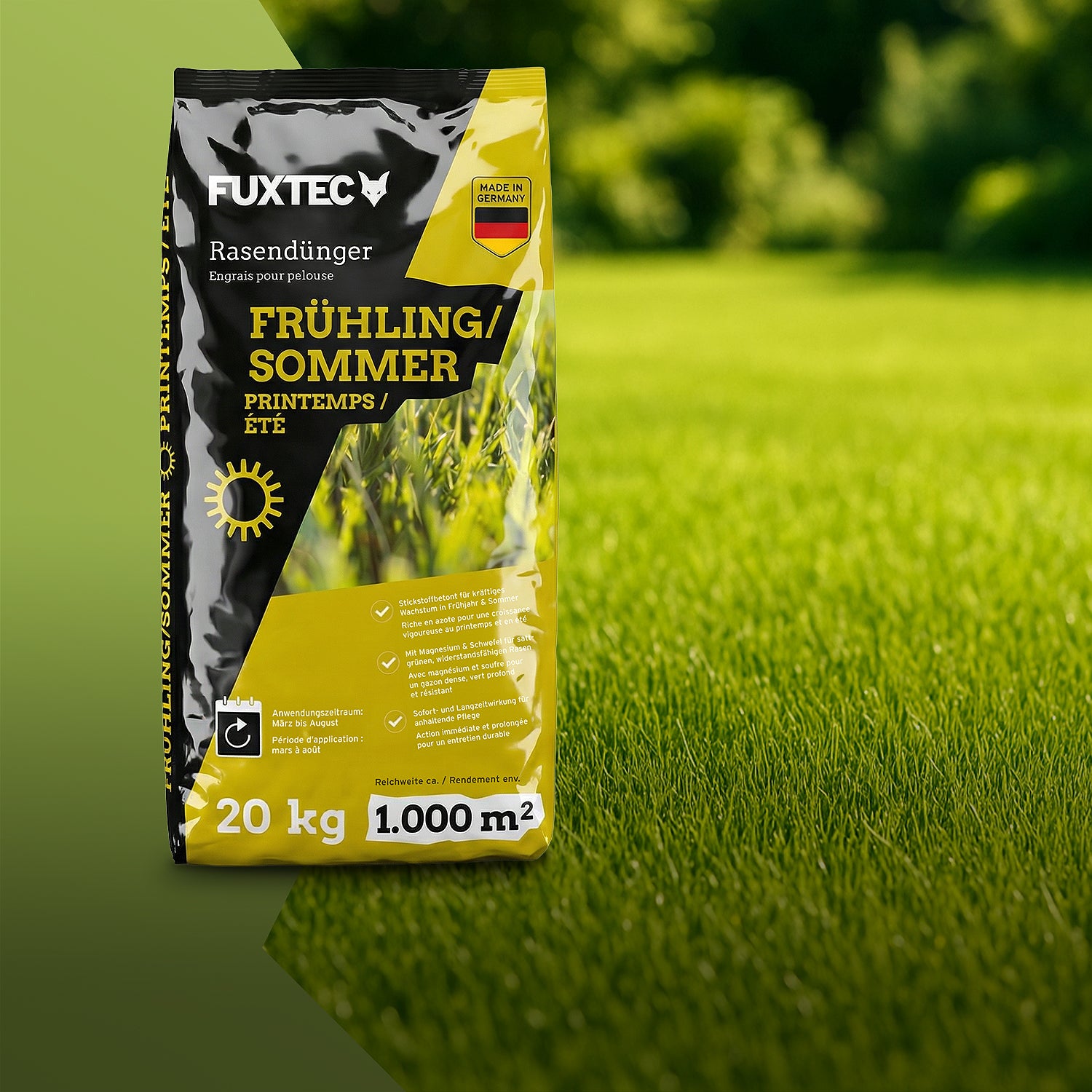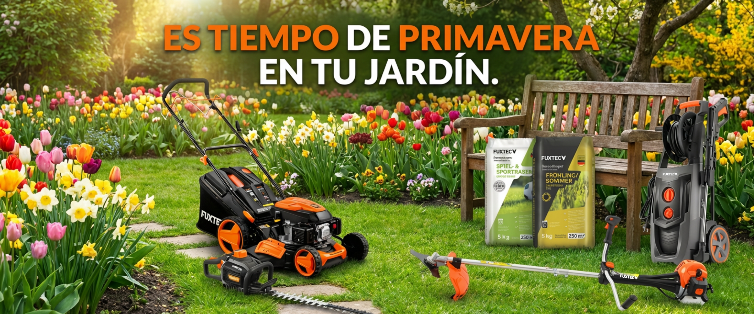 En primavera, el césped necesita nueva energía. Después del invierno, es importante aportarle los nutrientes adecuados y volver a cubrir las zonas despobladas. Con las semillas y fertilizantes para césped de FUXTEC, el césped recupera rápidamente su densidad, fuerza y un verde intenso, creando la base ideal para un césped fuerte y resistente en la nueva temporada de jardinería.