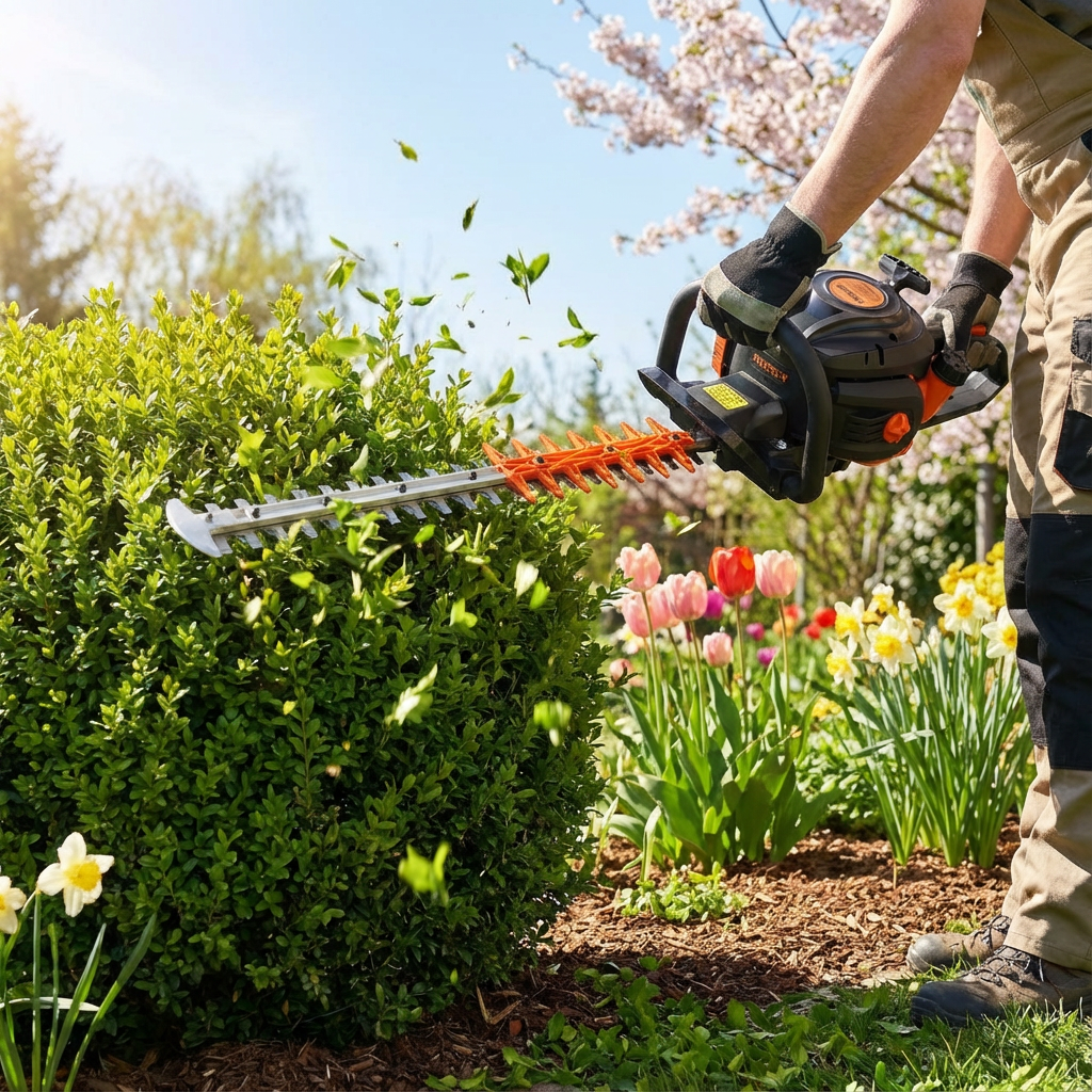 En cuanto las temperaturas se mantienen de forma constante por encima de unos 8–10 °C y el suelo está libre de heladas, se puede empezar. Las tareas típicas de inicio en primavera incluyen el cuidado del césped, la poda de setos y arbustos, así como la preparación de los parterres.