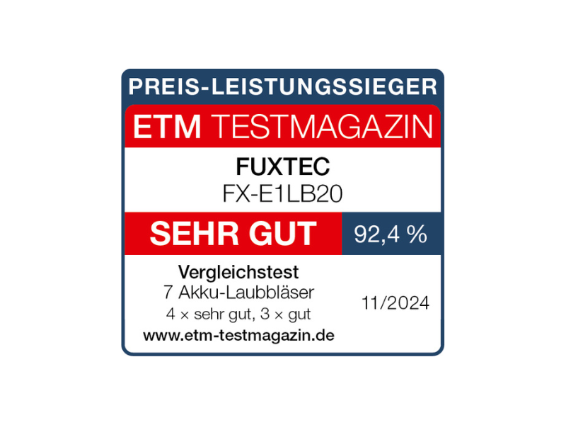 Der FUXTEC 20V Akku-Laubbläser FX-E1LB20 bietet bei nur 2,7 kg ein leises und effizientes Laubblasen. Die Blasgeschwindigkeit von 38 m/s und der leistungsstarke Lithium-Ionen-Akku ermöglichen einfaches, kabelloses Arbeiten auf Knopfdruck - Ideal für den Einsatz rund ums Haus.
