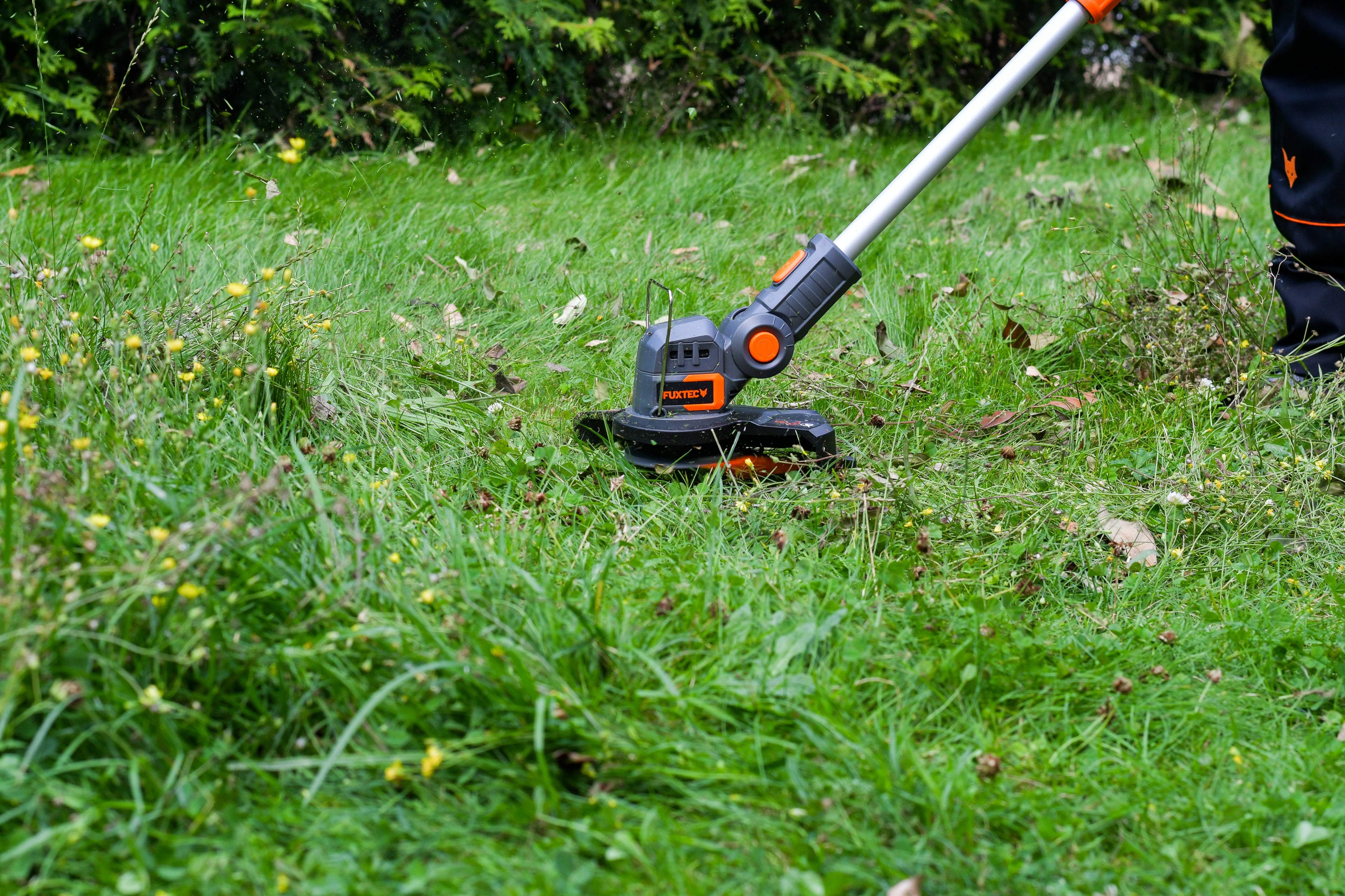El cortabordes a batería de 20V de FUXTEC tiene potencia suficiente para sus pequeños céspedes, es fácil de manejar y muy silencioso. Justo lo que necesitan las propiedades pequeñas pero finas.