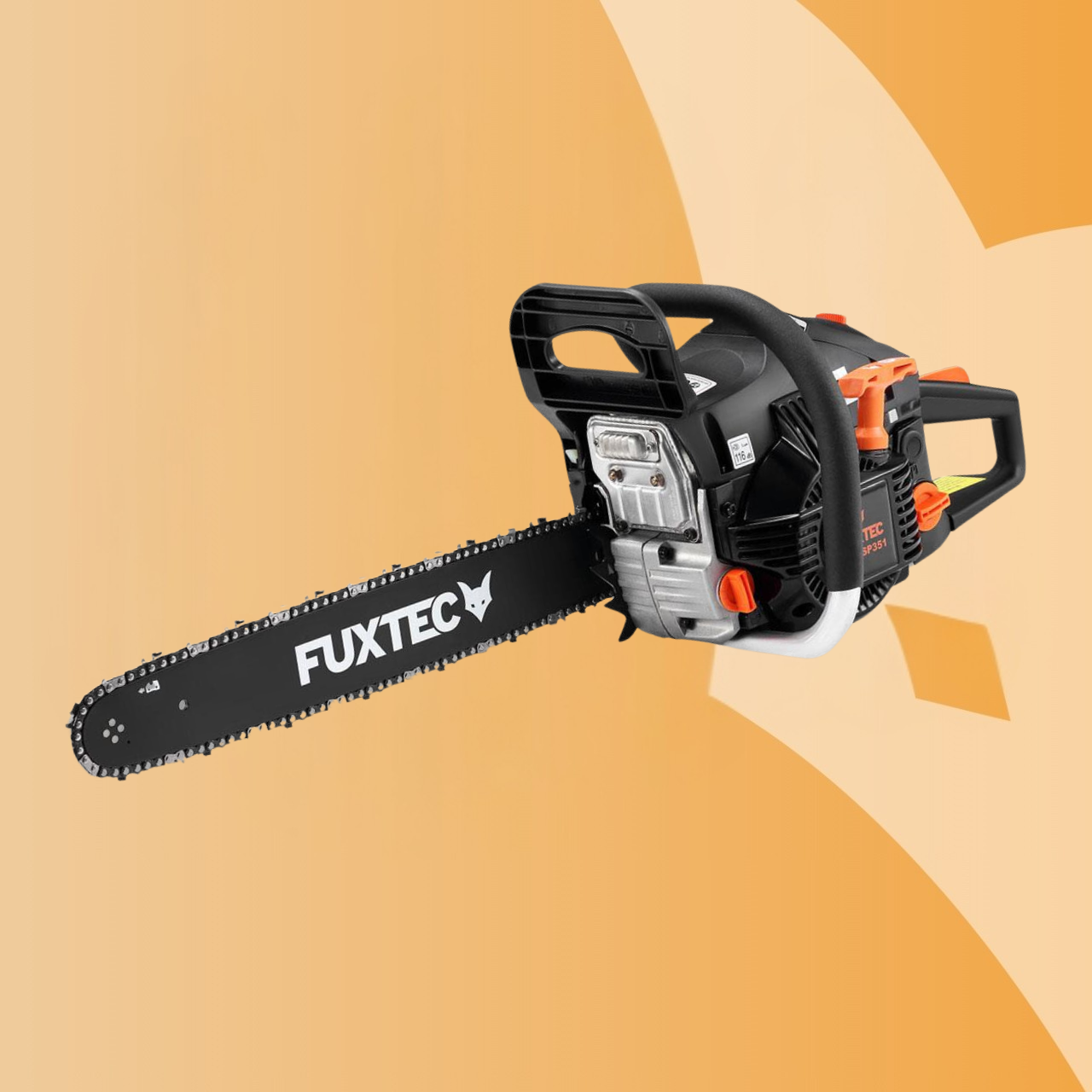 Mejorada para un uso prolongado: FX-KSP351 con 50,8 cm³, espada de 46 cm, Easy-Start y Auto-Choke – arranque fiable, cortes potentes y seguridad de parada inmediata.