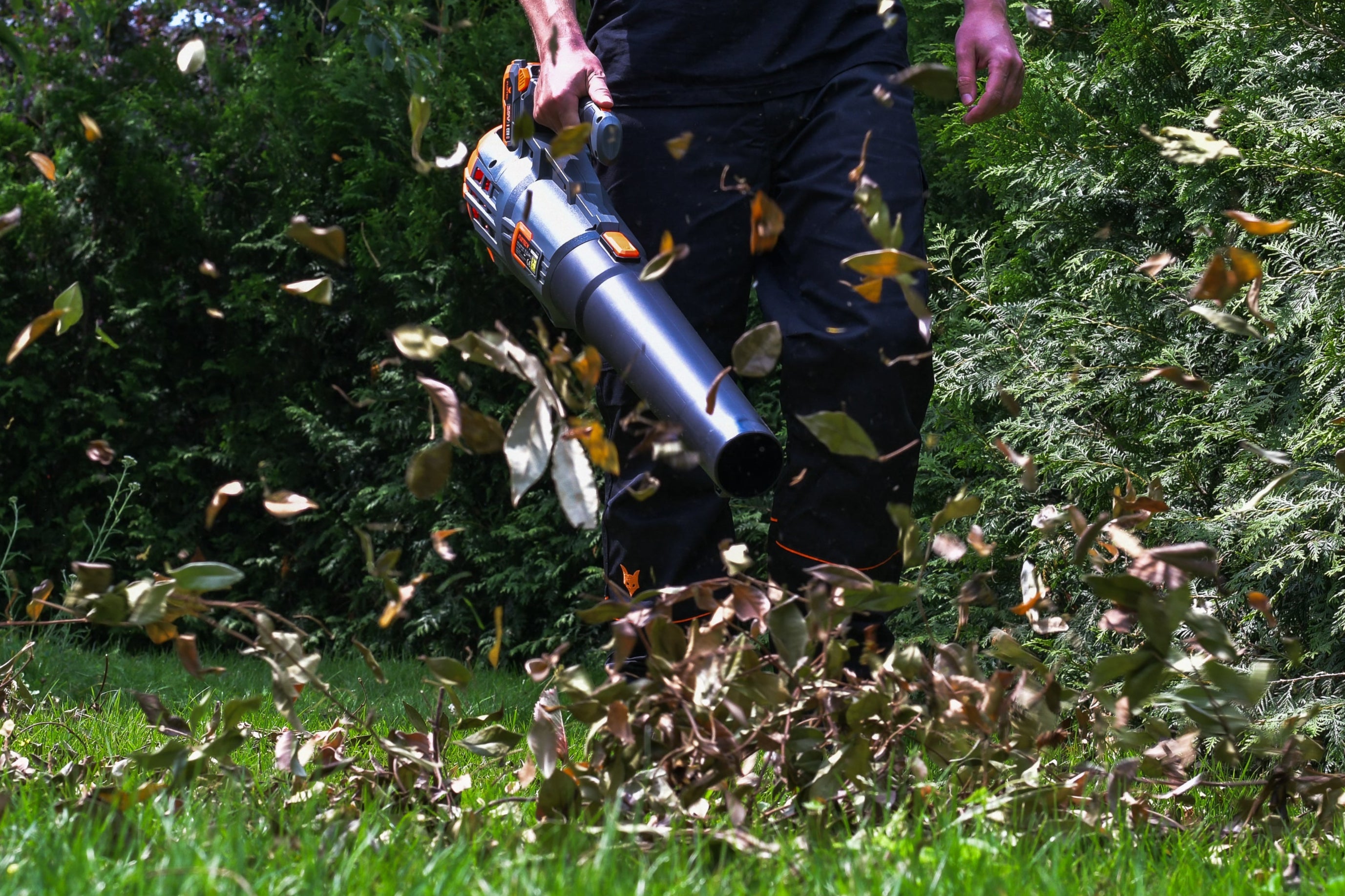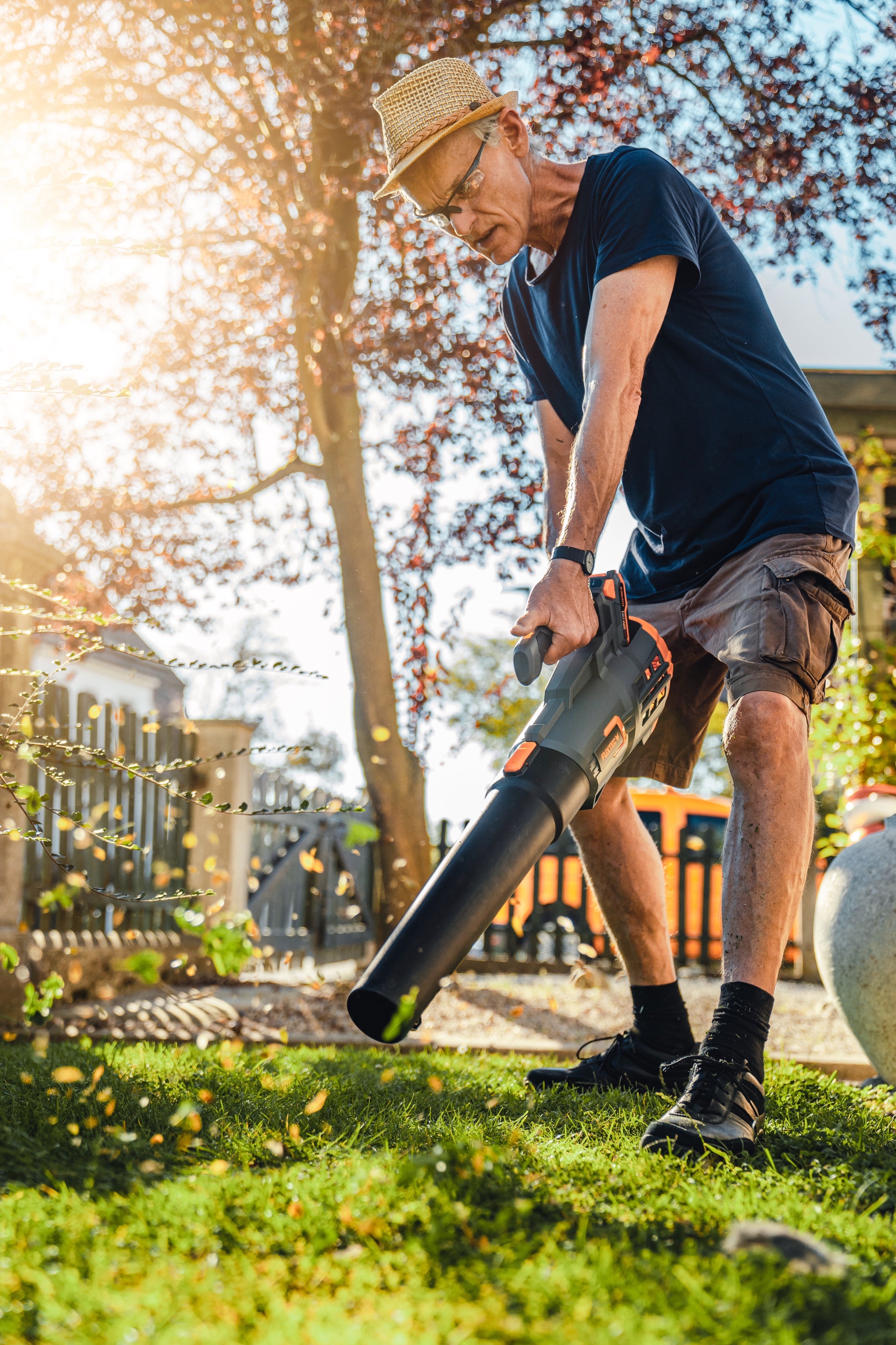El soplador de hojas a batería de 20V de FUXTEC tiene potencia suficiente para su jardín, camino o entrada de coches. Es fácil de manejar y muy silencioso. Justo lo que necesitan las propiedades pequeñas pero finas.